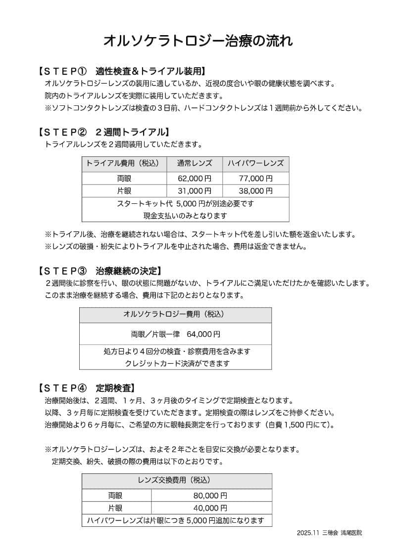 オルソケラトロジー治療は予約制となっております。ご希望の方はまず、お電話にてご予約をお取りくださいますようお願いいたします。